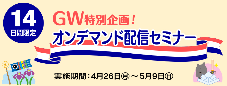 そんな皆様の声におこたえし、通常ライブ配信セミナーとして開催しご好評をいただいている以下の3セミナーを、14日間限定でオンデマンド配信します。ぜひこの機会にご視聴ください!
